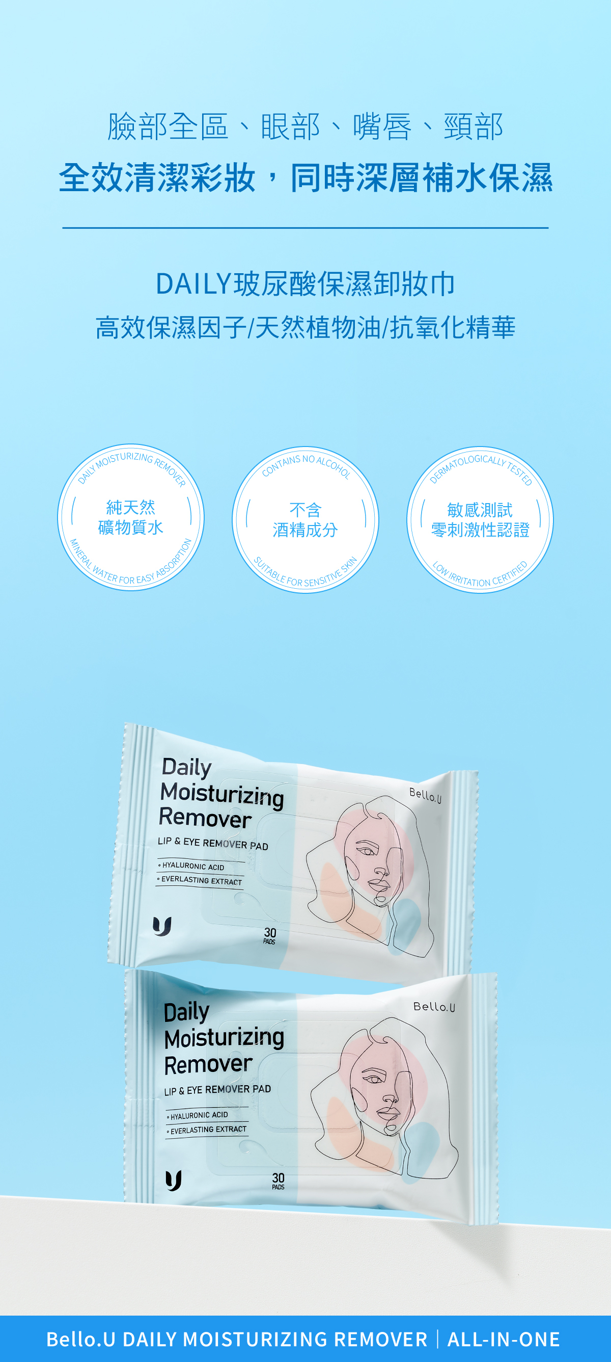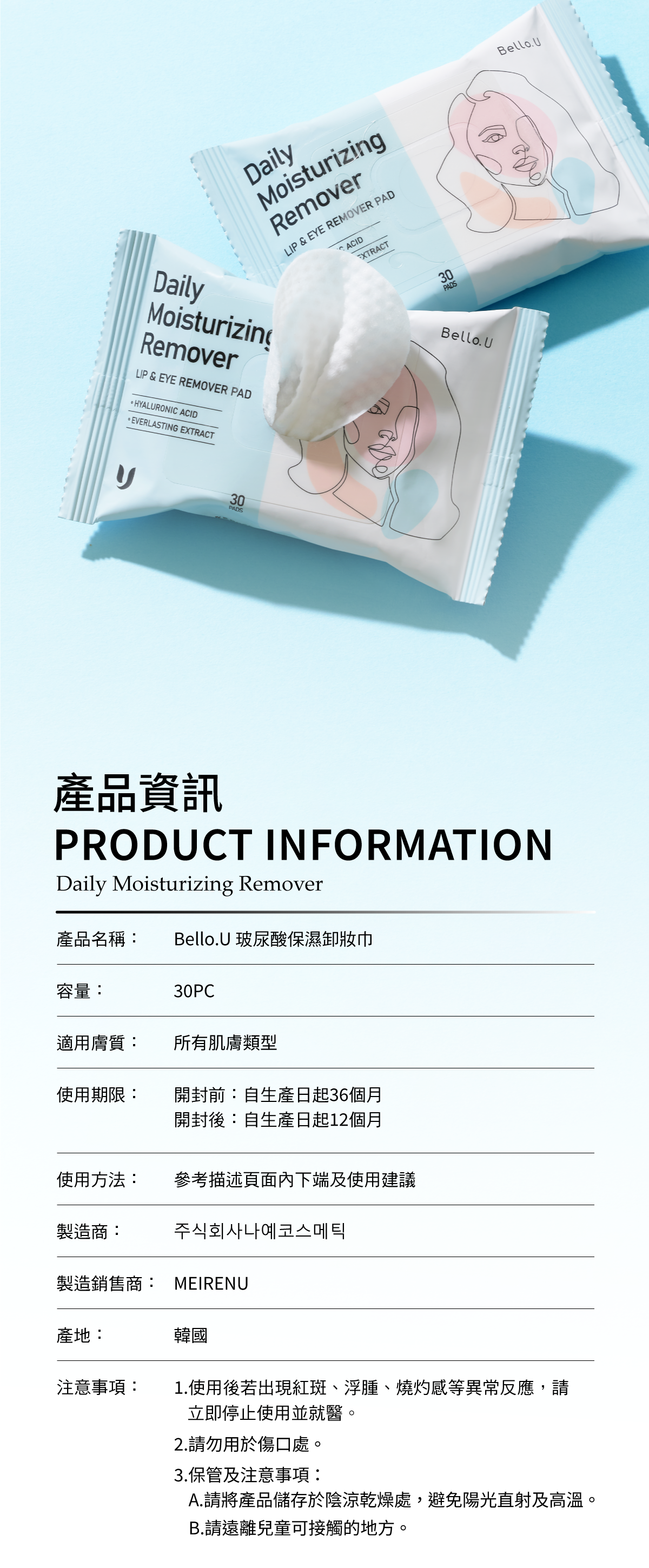 🔺 玻尿酸保濕卸妝巾【單包 30 pc】