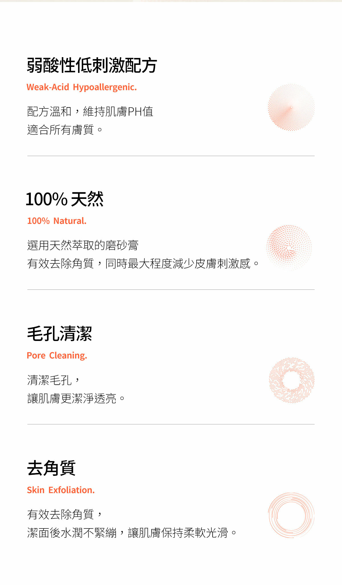 ✓ 100% 天然磨砂膏:清除老廢角質,無傷肌膚